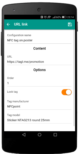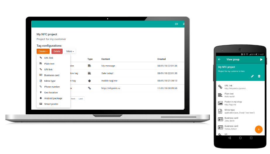 Use the web interface features from your desktop PC to quickly and easily create tag configurations. A mobile application can only be used for writing configuration to an NFC tag.